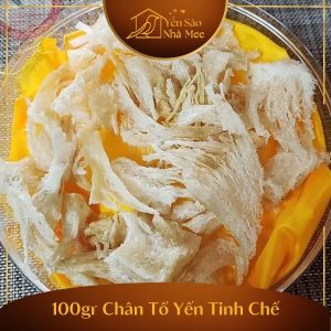 Chân tổ yến tinh chế là phần chân được chọn lựa chân to, vàng sậm hơn được đánh giá là già tổ hơn, thời gian thu hoạch từ 6 tháng trở lên. Phần chân tổ không có kích thước cố định. Chân to/nhỏ phụ thuộc vào các tổ yến nguyên. Tổ yến to thì phần chân yến to và ngược lại.